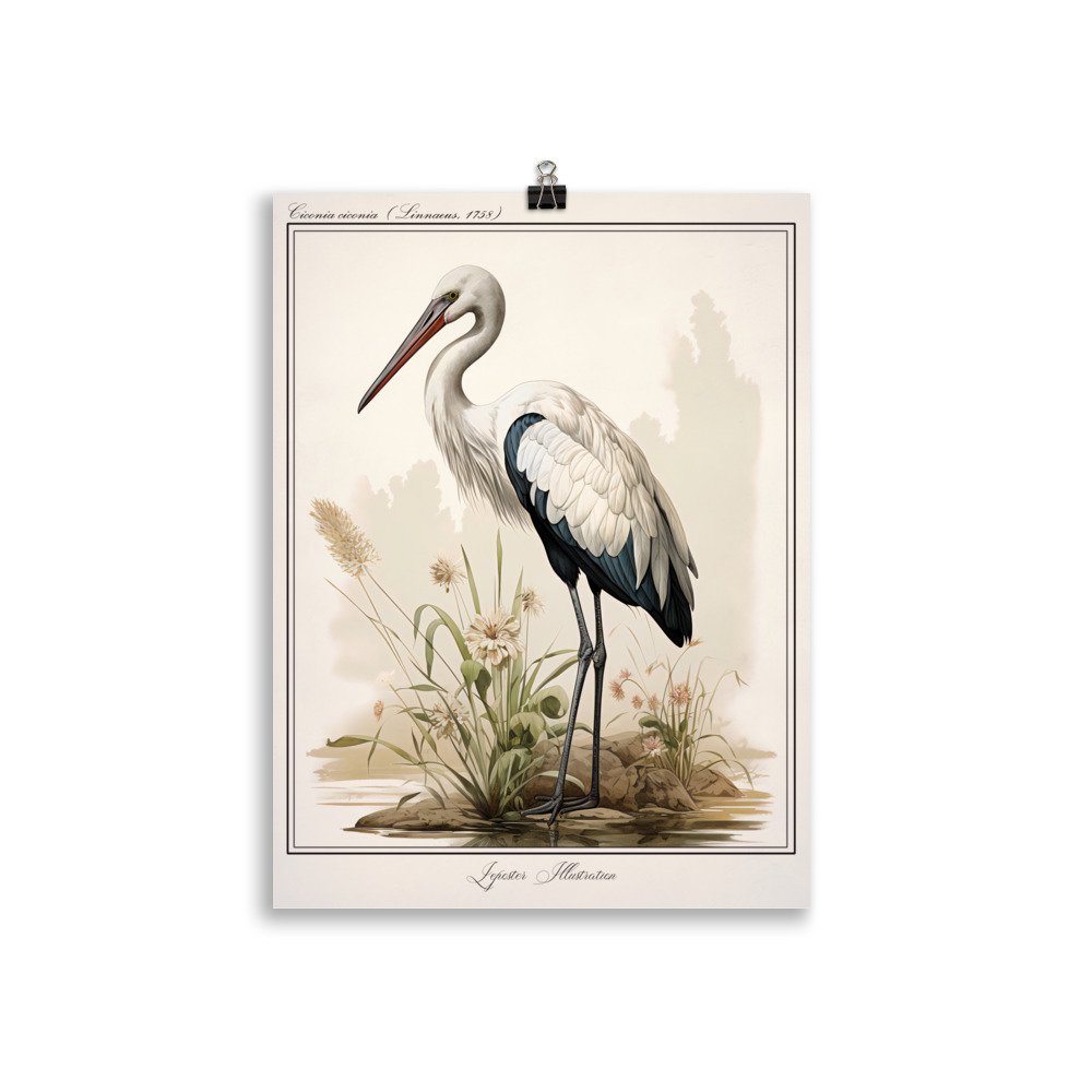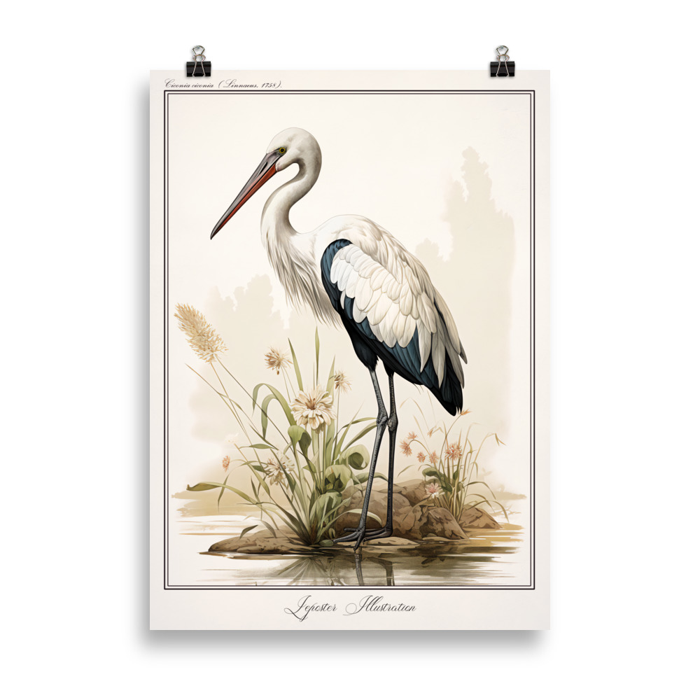 L’Affiche « Naturaliste Vintage ‘Cigogne’ – Élégance rétro de la faune aviaire » est bien plus qu’une simple décoration murale, c’est une immersion dans la nature pittoresque de l’Europe. L’art naturaliste de l’affiche révèle chaque détail des plumes délicates, de la silhouette élancée et de l’expression emblématique de ces oiseaux migrateurs.