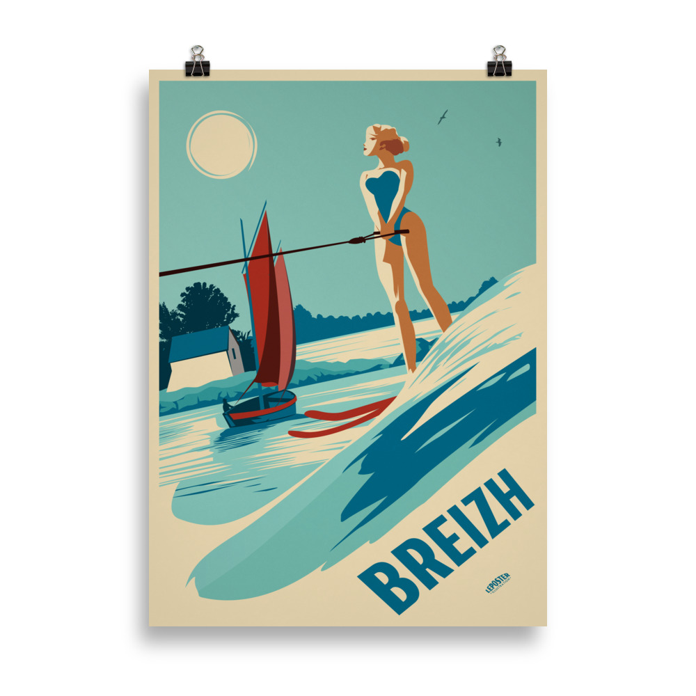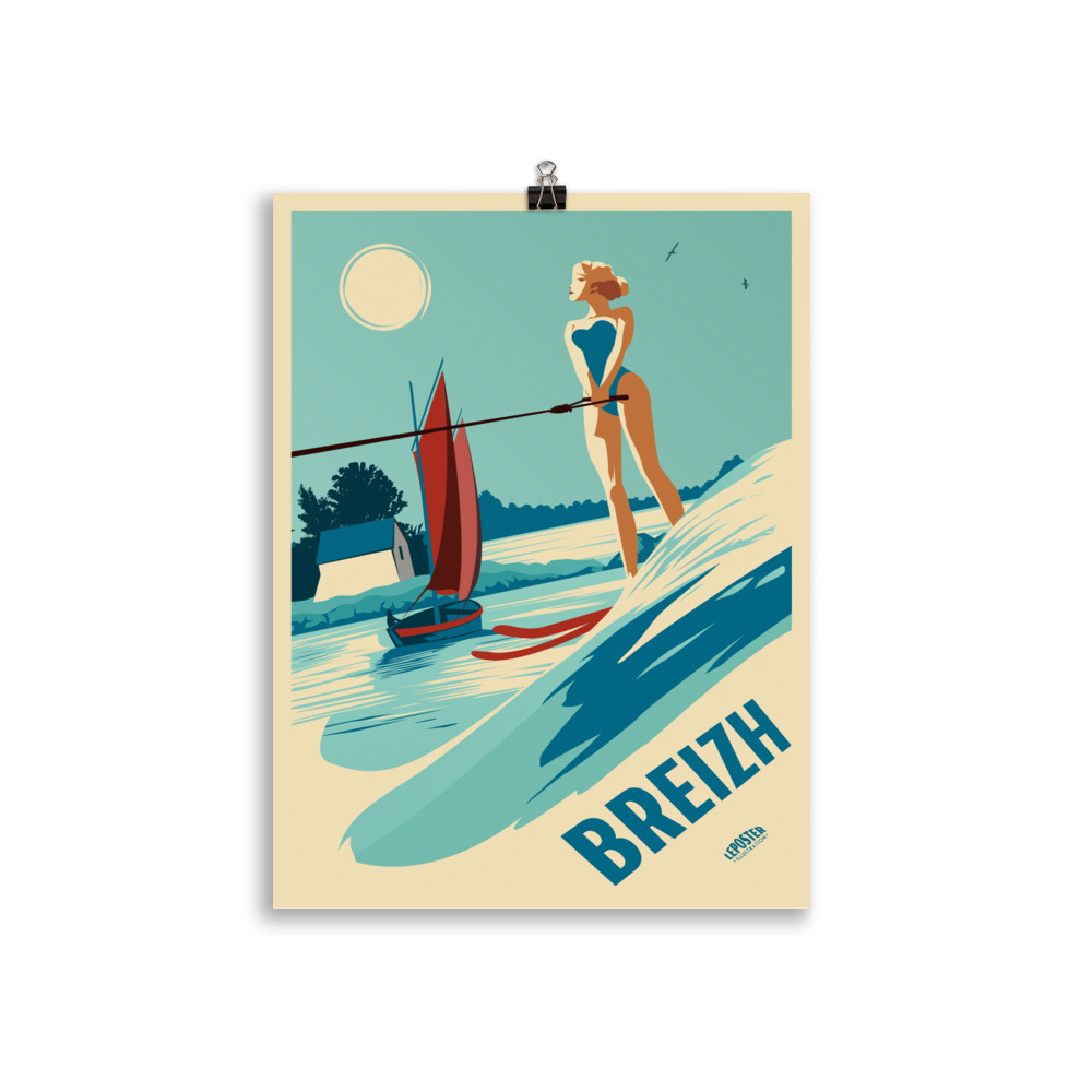 Apportez une touche de dynamisme vintage et d’évasion bretonne à votre intérieur avec ce poster « Breizh Ski Nautique », une célébration artistique du littoral et de l’esprit des années 50.