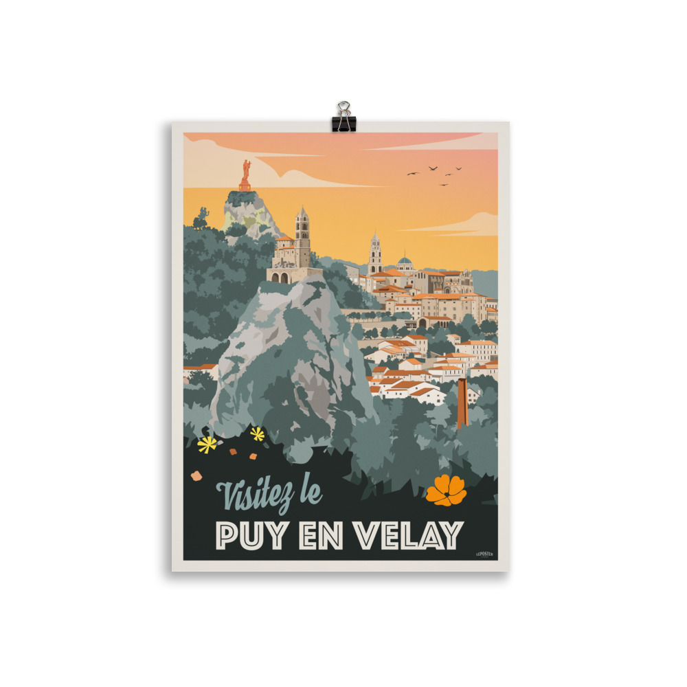 Apportez une touche d’élégance rétro et de beauté architecturale à votre intérieur avec ce poster « Puy-en-Velay », une interprétation artistique et lumineuse du charme historique de l’Auvergne.